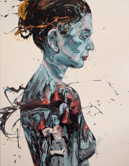 Sirpa Särkijärvi's (b. 1974 in Muonio) paintings are reflections of time. They contemplate human existence and examine relationships of power, gender, behaviour, norms, marginalisation and exclusion. Their energetic painterliness, the power of their colours and their figurative physical force are inextricable from the conflicts of meaning between states of mind, consciousness and the subconscious and their fluctuating nature. Särkijärvi is interested in approaching her subjects from the perspective of literary deconstruction or critical reading to reveal hidden conflicts of meaning. We cannot escape each others' influence. Her paintings are inspired by our motivations, needs and the inconsistency of our actions, which together form the complex entity that the artist attempts to reflect in her work. What is between the lines is also important. Intertextuality, everything that has been experienced, seen and learned influences the artists's interpretation. Finally, viewers also receive and interpret everything in the painting through their own backgrounds and experiences.
