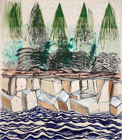 Whether a view of a landscape that goes on for miles beyond the point the human eye can discern, or a rocky shoreline viewed directly from the water, the magnanimous beauty of creation is clear. Kottmann's mode of visual meaning making isn't restricted to any scale.