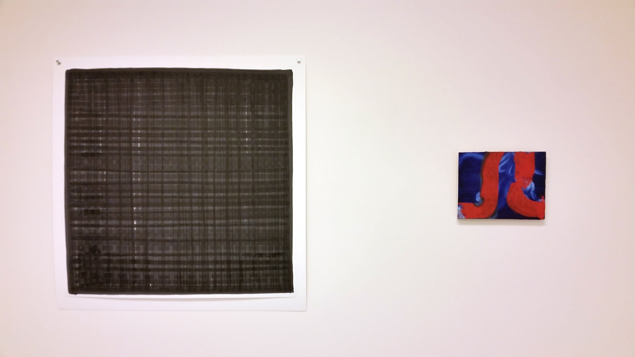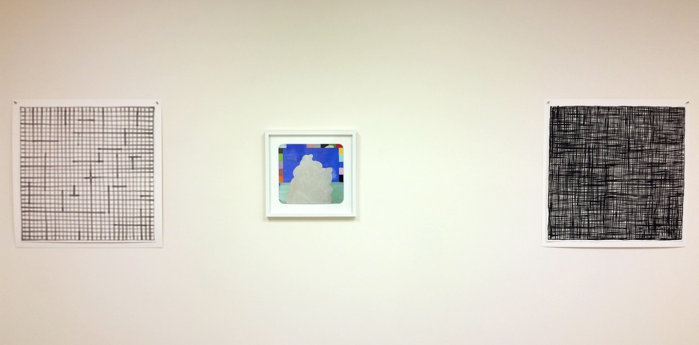 Her ink “Heaven” paintings can be seen as a painterly reinterpretation of the Modernist, and later Minimalist fascination with the grid, with a kinship to the zen-like graphite works of Agnes Martin. These paintings, which also remind one of woven fabric or basketry, relate to her experience as a sculptor working with discarded and reclaimed 3D materials and objects.