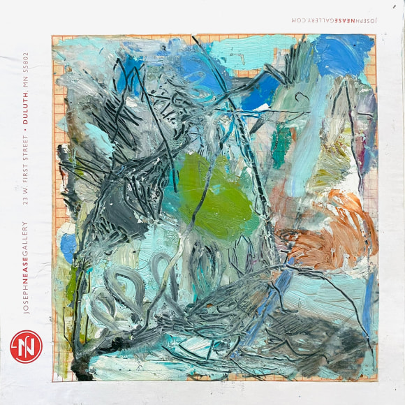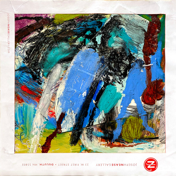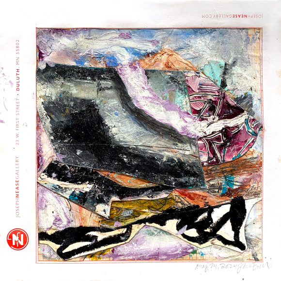 Jim worked diligently on this particular series of paintings in spring 2024, completing them in late May and indicating these were in honor of our long working relationship with him, and a way for folks to own an original artwork at a modest price.  Unknown to us until after receiving these paintings from Jim, he was battling cancer and going through painful treatments at the time and after.  A great loss for us and the art world, James Brinsfield passed away on Saturday, September 21, 2024 in his studio with his partner Alice Thorson at his side.  We share this news with sadness, but also with the privilege of having known him as a friend and a great artist.