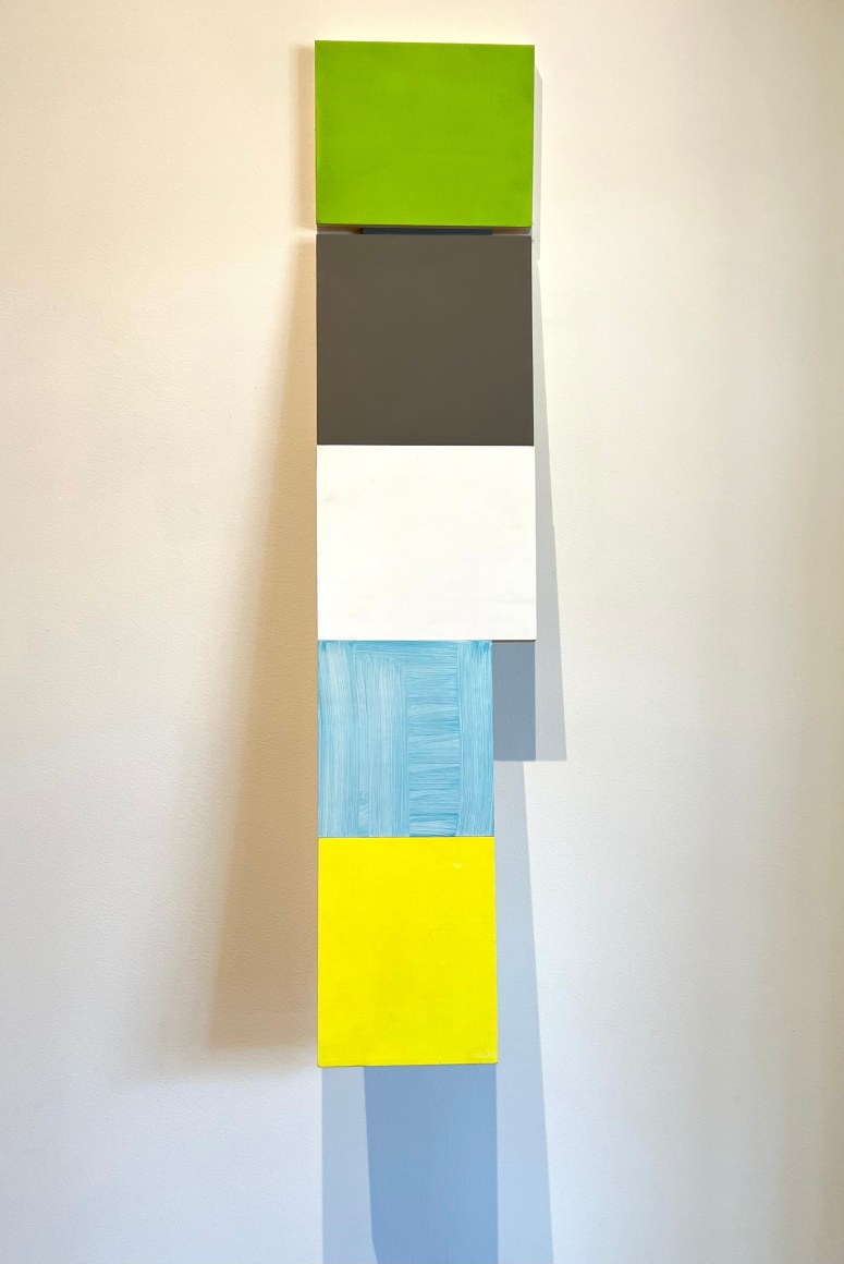 Woodfill’s approach embraces the provisional: the context of the world, his life and his studio is not static and neither is the work. Instead of observing his artifacts, the residue of his process, with a sense of heroic completion, Woodfill’s art inspires yet another set of parameters, yet another set of adjustments. While in his studio many works are subject to almost continuous reassessment and alteration. Compositions and material elements are often discarded and later retrieved as found fragments for new compositions.[1]
