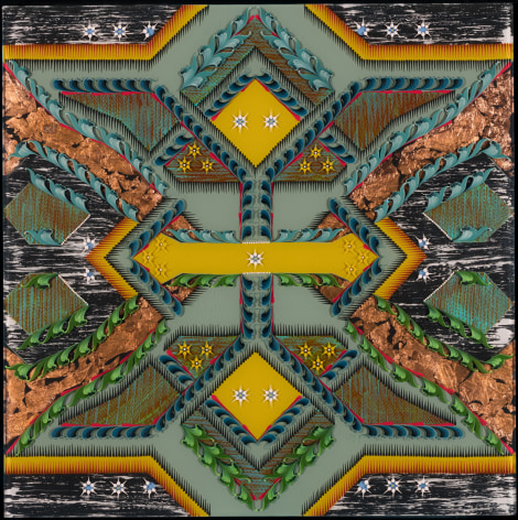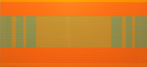 Tara Austin, brand new small paintings paired with recent paintings on paper by James Brinsfield – compare patterns and influences. A grouping of two recent and one new striped, geometric paintings on aluminum by Matthew Kluber – follow the lines and bask in the warmth of their sunshine-colored palette.