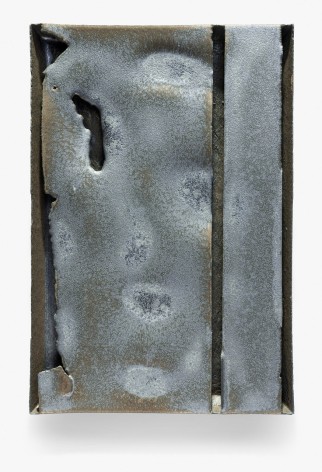 Enter a separate space, with three quiet and contemplative works each, from David Bowen and Cary Esser. See how Esser’s wall-mounted ceramic Parfleche pieces balance with Bowen’s carved polystyrene translations of sea and sky. And view a separate video from Bowen on how he makes his carved pieces and the source of their shapes.